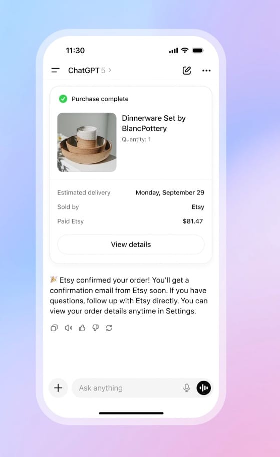 | 즉시 결제(Instant Checkout) | 챗GPT 대화창에서 바로 결제 및 주문 완료 |